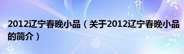 本文關于2012遼寧春晚小品的簡介就講解完畢,希望對大家有所幫助。