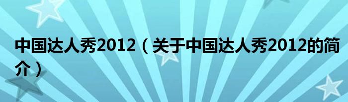 本文關于中國達人秀2012的簡介就講解完畢,希望對大家有所幫助。