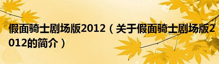 大家好,假面騎士劇場(chǎng)版2012,關(guān)于假面騎士劇場(chǎng)版2012的簡(jiǎn)介很多人還不知道,現(xiàn)在讓我們一起來看看吧!
