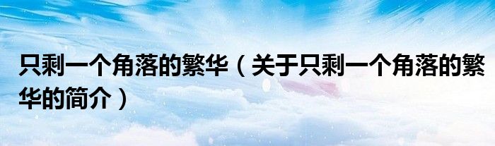 本文關于只剩一個角落的繁華的簡介就講解完畢,希望對大家有所幫助。