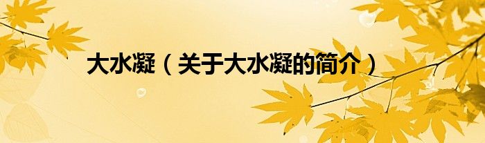 大家好,大水凝,關(guān)于大水凝的簡介很多人還不知道,現(xiàn)在讓我們一起來看看吧!