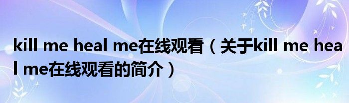 本文關于kill me heal me在線觀看的簡介就講解完畢,希望對大家有所幫助。