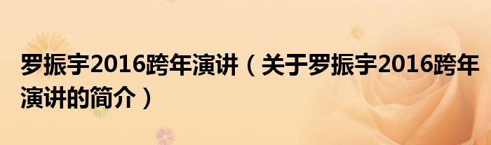 本文關于羅振宇2016跨年演講的簡介就講解完畢,希望對大家有所幫助。