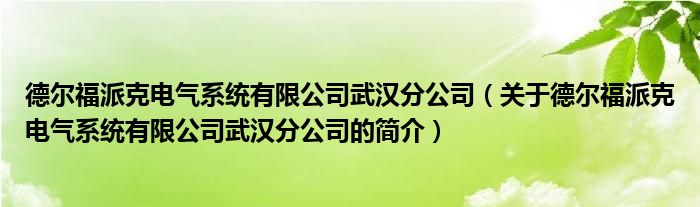 本文關(guān)于德?tīng)柛E煽穗姎庀到y(tǒng)有限公司武漢分公司的簡(jiǎn)介就講解完畢,希望對(duì)大家有所幫助。