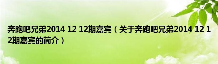 本文關于奔跑吧兄弟2014 12 12期嘉賓的簡介就講解完畢,希望對大家有所幫助。