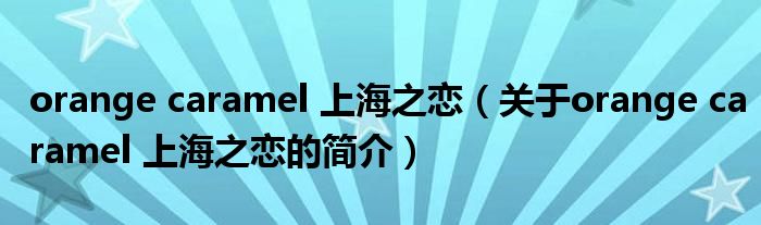 本文關(guān)于orange caramel 上海之戀的簡介就講解完畢,希望對大家有所幫助。