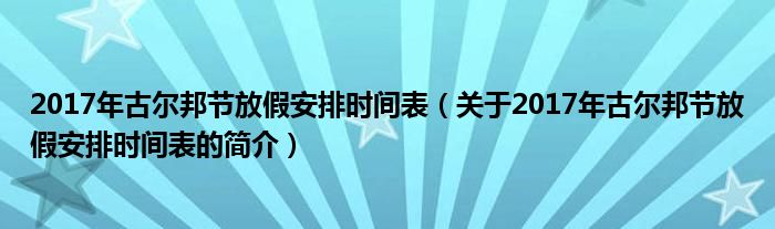 本文關于2017年古爾邦節(jié)放假安排時間表的簡介就講解完畢,希望對大家有所幫助。