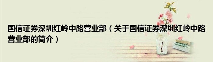 本文關于國信證券深圳紅嶺中路營業部的簡介就講解完畢,希望對大家有所幫助。