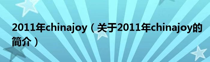 大家好,2011年chinajoy,關于2011年chinajoy的簡介很多人還不知道,現在讓我們一起來看看吧!