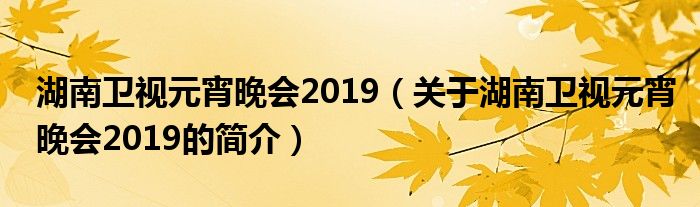 本文關于湖南衛視元宵晚會2019的簡介就講解完畢,希望對大家有所幫助。