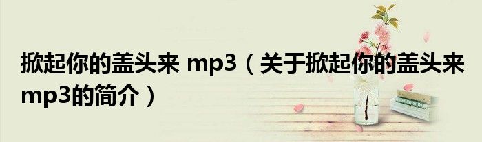 本文關于掀起你的蓋頭來 mp3的簡介就講解完畢,希望對大家有所幫助。