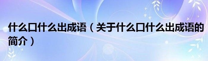 本文關于什么口什么出成語的簡介就講解完畢,希望對大家有所幫助。