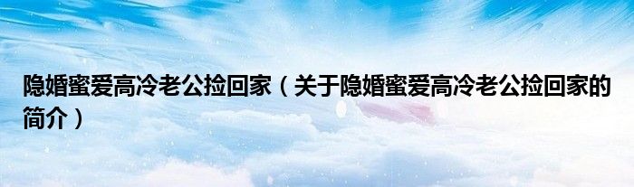 本文關(guān)于隱婚蜜愛高冷老公撿回家的簡介就講解完畢,希望對大家有所幫助。