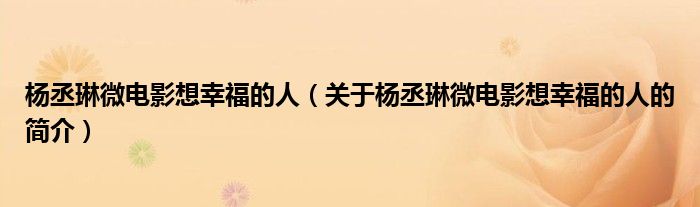 大家好,楊丞琳微電影想幸福的人,關于楊丞琳微電影想幸福的人的簡介很多人還不知道,現在讓我們一起來看看吧!