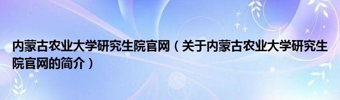 大家好,內蒙古農業大學研究生院官網,關于內蒙古農業大學研究生院官網的簡介很多人還不知道,現在讓我們一起來看看吧!