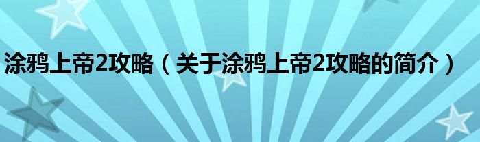 大家好,涂鴉上帝2攻略,關(guān)于涂鴉上帝2攻略的簡介很多人還不知道,現(xiàn)在讓我們一起來看看吧!