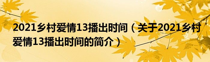 本文關于2021鄉村愛情13播出時間的簡介就講解完畢,希望對大家有所幫助。
