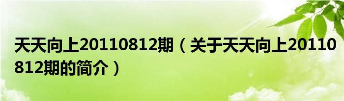 大家好,天天向上20110812期,關(guān)于天天向上20110812期的簡介很多人還不知道,現(xiàn)在讓我們一起來看看吧!