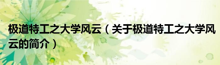 大家好,極道特工之大學風云,關于極道特工之大學風云的簡介很多人還不知道,現在讓我們一起來看看吧!