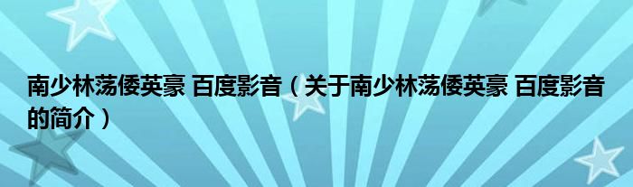 大家好,南少林蕩倭英豪 百度影音,關(guān)于南少林蕩倭英豪 百度影音的簡介很多人還不知道,現(xiàn)在讓我們一起來看看吧!