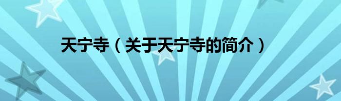 大家好,天寧寺,關(guān)于天寧寺的簡(jiǎn)介很多人還不知道,現(xiàn)在讓我們一起來看看吧!
