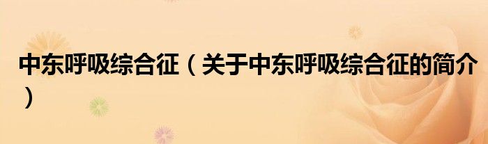 本文關于中東呼吸綜合征的簡介就講解完畢,希望對大家有所幫助。