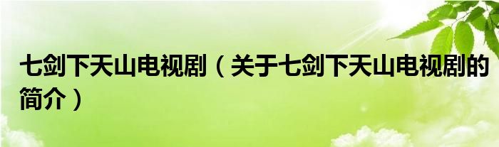 本文關于七劍下天山電視劇的簡介就講解完畢,希望對大家有所幫助。