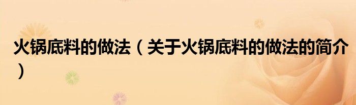 本文關于火鍋底料的做法的簡介就講解完畢,希望對大家有所幫助。