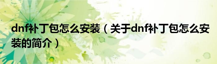 大家好,dnf補丁包怎么安裝,關于dnf補丁包怎么安裝的簡介很多人還不知道,現在讓我們一起來看看吧!