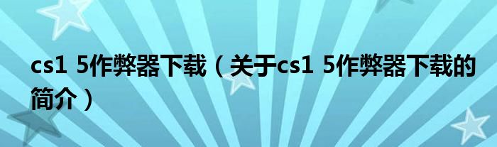 本文關于cs1 5作弊器下載的簡介就講解完畢,希望對大家有所幫助。
