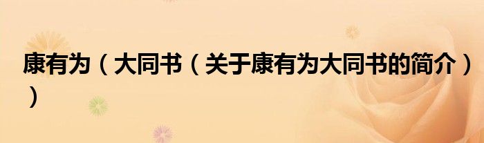 大家好,康有為 大同書,關于康有為 大同書的簡介很多人還不知道,現在讓我們一起來看看吧!