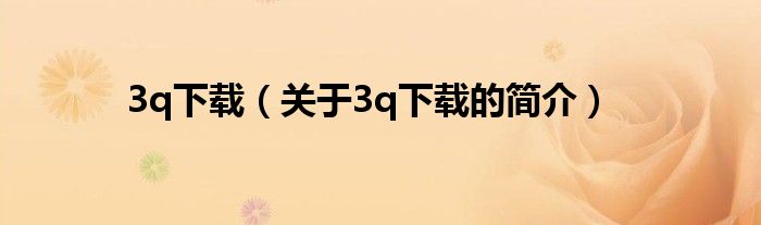 本文關于3q下載的簡介就講解完畢,希望對大家有所幫助。