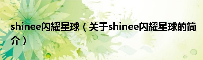 大家好,shinee閃耀星球,關于shinee閃耀星球的簡介很多人還不知道,現在讓我們一起來看看吧!