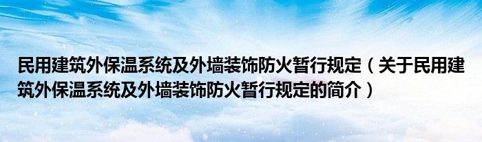 本文關于民用建筑外保溫系統及外墻裝飾防火暫行規定的簡介就講解完畢,希望對大家有所幫助。