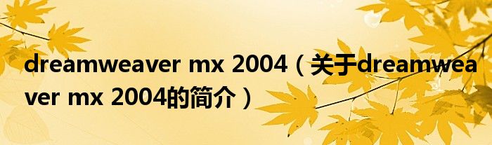大家好,dreamweaver mx 2004,關于dreamweaver mx 2004的簡介很多人還不知道,現在讓我們一起來看看吧!