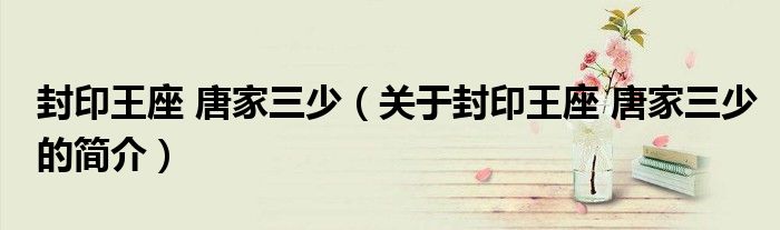 本文關于封印王座 唐家三少的簡介就講解完畢,希望對大家有所幫助。