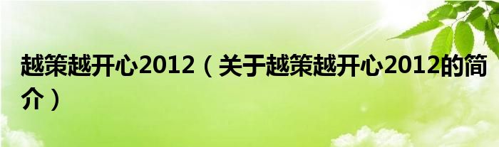 大家好,越策越開心2012,關于越策越開心2012的簡介很多人還不知道,現在讓我們一起來看看吧!
