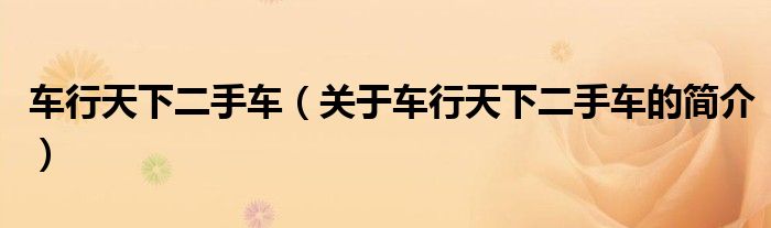 大家好,車行天下二手車,關于車行天下二手車的簡介很多人還不知道,現在讓我們一起來看看吧!