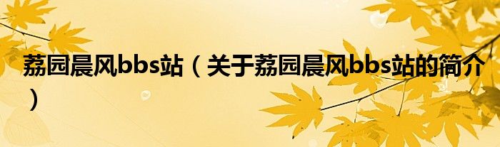 本文關于荔園晨風bbs站的簡介就講解完畢,希望對大家有所幫助。