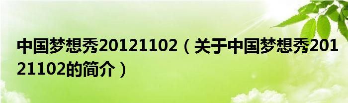 本文關于中國夢想秀20121102的簡介就講解完畢,希望對大家有所幫助。