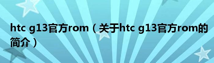 本文關(guān)于htc g13官方rom的簡介就講解完畢,希望對(duì)大家有所幫助。