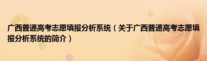 大家好,廣西普通高考志愿填報分析系統,關于廣西普通高考志愿填報分析系統的簡介很多人還不知道,現在讓我們一起來看看吧!