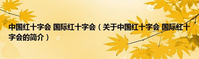 本文關于中國紅十字會 國際紅十字會的簡介就講解完畢,希望對大家有所幫助。