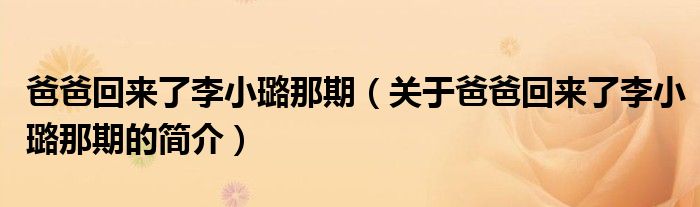 大家好,爸爸回來(lái)了李小璐那期,關(guān)于爸爸回來(lái)了李小璐那期的簡(jiǎn)介很多人還不知道,現(xiàn)在讓我們一起來(lái)看看吧!
