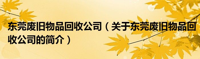 大家好,東莞廢舊物品回收公司,關于東莞廢舊物品回收公司的簡介很多人還不知道,現在讓我們一起來看看吧!