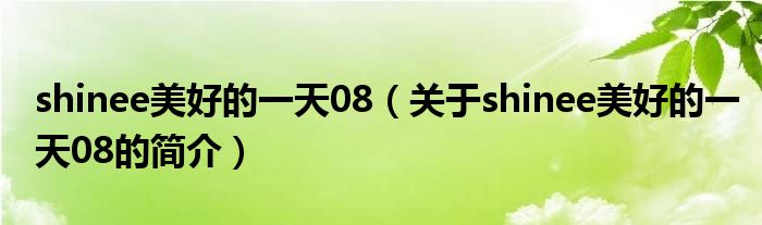 本文關于shinee美好的一天08的簡介就講解完畢,希望對大家有所幫助。