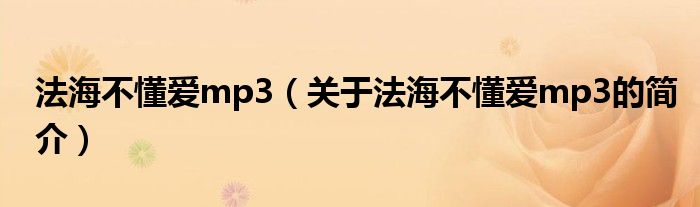 本文關(guān)于法海不懂愛(ài)mp3的簡(jiǎn)介就講解完畢,希望對(duì)大家有所幫助。