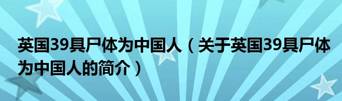本文關于英國39具尸體為中國人的簡介就講解完畢,希望對大家有所幫助。