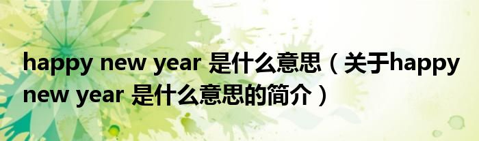 本文關于happy new year 是什么意思的簡介就講解完畢,希望對大家有所幫助。