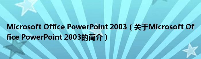 大家好,Microsoft Office PowerPoint 2003,關于Microsoft Office PowerPoint 2003的簡介很多人還不知道,現在讓我們一起來看看吧!